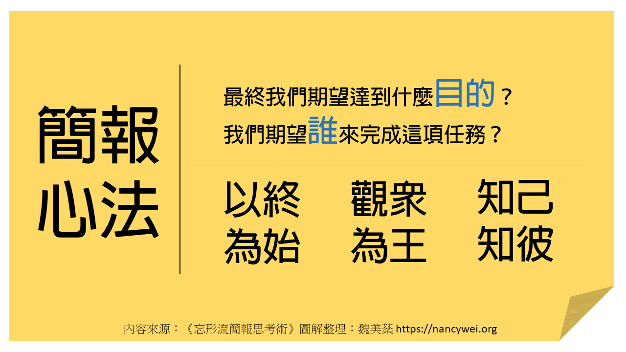讀書只是讀完不會有用,於是搭著他的簡報與我自己的圖解簡報風格 ,也試作了兩個美棻流X忘形流簡報 ,還整理出一份後續可做為參考的筆記配上我自己對於簡報的理解,給大家參考,因此有些可能跟原作不太一樣!
