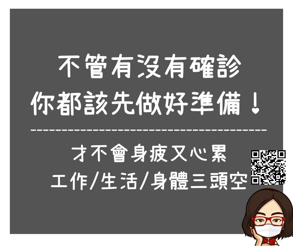 2022 年 05 月 31 日 由Nancy 魏美棻撰寫 不管有沒有確診,都可以先做好的準備! 請分享,讓我知道你喜歡這篇文章 按一下以分享至 Facebook(在新視窗中開啟) Facebook 分享到 LinkedIn(在新視窗中開啟) LinkedIn 按一下即可以電子郵件傳送連結給朋友(在新視窗中開啟) 電子郵件 按一下即可分享至 X(在新視窗中開啟) X 喜歡 正在載入... 相關